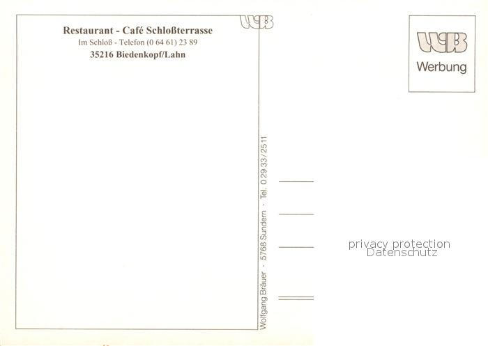 73214352 Gladenbach Lahn Hessen Blick zum Schloss Cafe Restaurant Schlossterrasse postalisch nicht gelaufen Erhaltung siehe scans [FriedD77] KatCode: 11110006534004