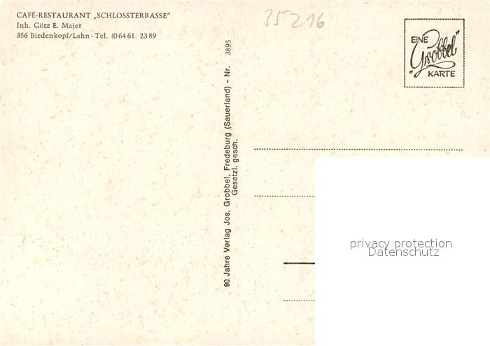 73568885 Gladenbach Lahn Hessen Cafe-Restaurant Schlossterrasse postalisch nicht gelaufen Erhaltung siehe scans [PaolaD17] KatCode: 11110006534004
