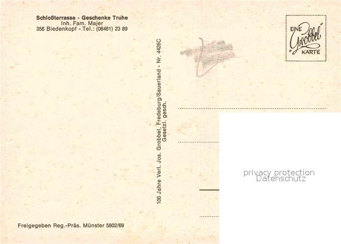 72761052 Gladenbach Lahn Hessen Fliegeraufnahme Schlossterrasse Geschenke Truhe postalisch nicht gelaufen Erhaltung siehe scans [LiesaD40] KatCode: 11110006534004