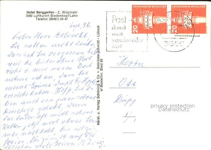 72578333 alte Postkarte Gladenbach Lahn Hessen Hotel Berggarten postalisch gelaufen Erhaltung siehe scans [AndreD76] KatCode: 11110006534004