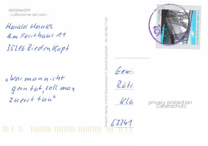 72720617 alte Postkarte Gladenbach Lahn Hessen Schloss Luftbild Hospitalstrasse Ehrenmal Markt postalisch gelaufen Erhaltung siehe scans [KathaD79] KatCode: 11110006534004