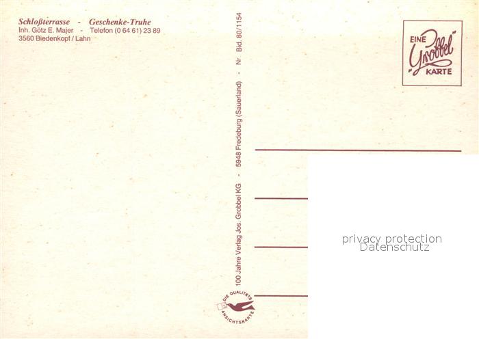 73211707 Gladenbach Lahn Hessen Schloss Schlossterrasse Geschenke Truhe postalisch nicht gelaufen Erhaltung siehe scans [WerneD78] KatCode: 11110006534004