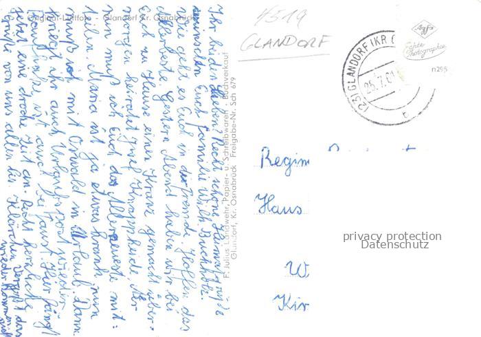 34146252 alte Postkarte Glandorf Osnabrueck Niedersachsen Panorama postalisch gelaufen Fliegeraufnahme Erhaltung siehe scans [FriedD77] KatCode: 11110003459034