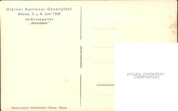 11945090 Glarus GL Gesangfest Rosengarten Rosenbaum postalisch nicht gelaufen Erhaltung siehe scans KatCode: 11470090300874