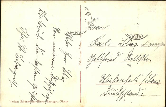 11105565 alte Postkarte Glarus GL Kantonspital postalisch gelaufen KatCode: 11470090300874