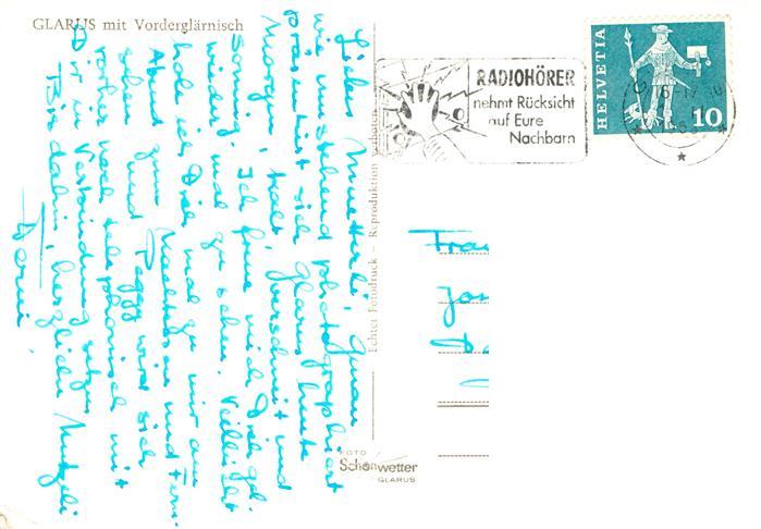 13889387 alte Postkarte Glarus GL mit Vorderglaernisch postalisch gelaufen Erhaltung siehe scans [WerneD78] KatCode: 11470090300874