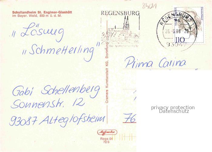 74049109 alte Postkarte Glashuett St Englmar Schullandheim Winter im Bayerischen Wald postalisch gelaufen Erhaltung siehe scans [FriedD77] KatCode: 11110009278184