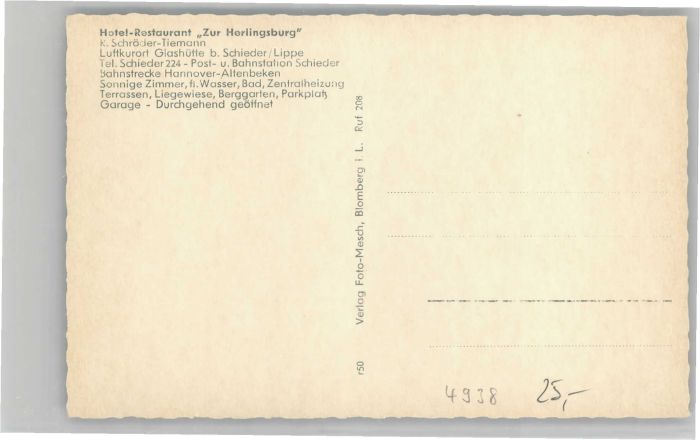 40685641 Glashuette Hotel Restaurant Zur Herlingsburg postalisch nicht gelaufen KatCode: