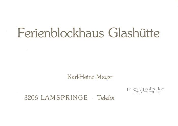 73849382 Glashuette Lamspringe Ferienblockhaus Glashuette postalisch nicht gelaufen Werbekarte (keine Postkarte) Erhaltung siehe scans [FriedD77] Werbekarte (keine Postkarte) Frie Katcode 11110003254023