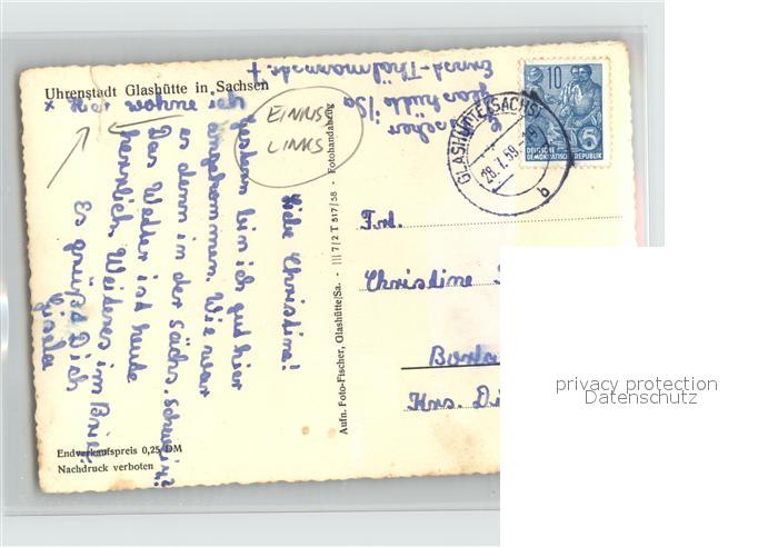 72413884 alte Postkarte Glashuette Sachsen Gesamtansicht Uhrenstadt postalisch gelaufen Erhaltung siehe scans KatCode: 11110014290150