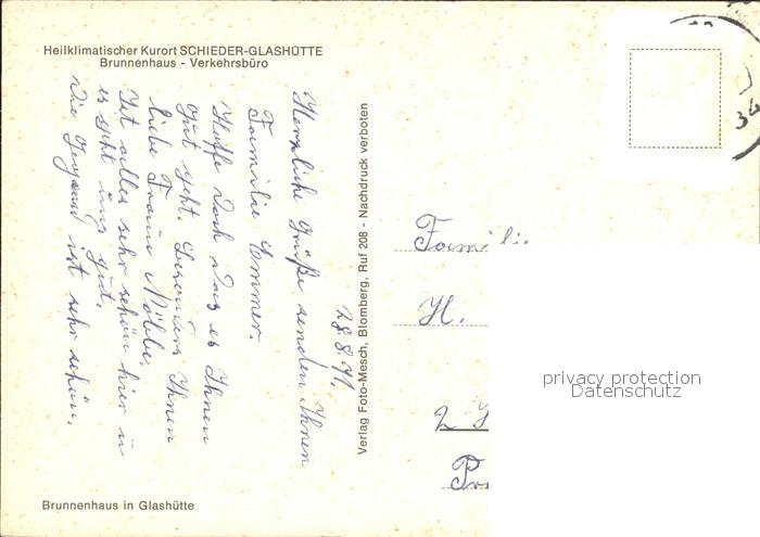 72156013 alte Postkarte Glashuette Schieder Brunnenhaus Verkehrsbuero Heilklimatischer Kurort postalisch gelaufen Erhaltung siehe scans KatCode: 11110005766060