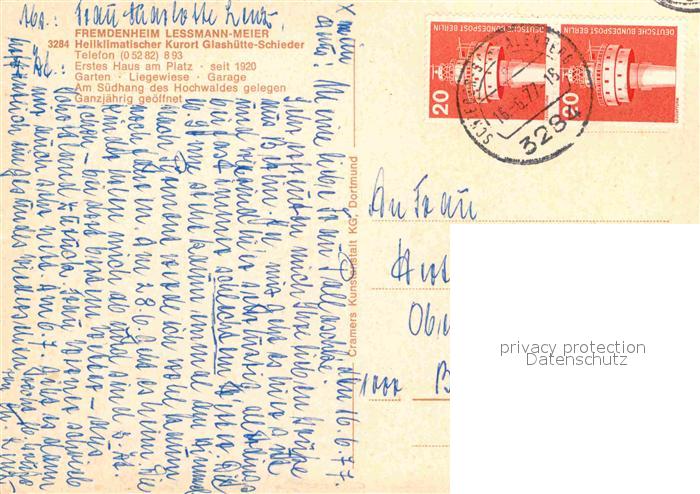 72915670 alte Postkarte Glashuette Schieder Fremdenheim Lessmann Meier postalisch gelaufen Erhaltung siehe scans [KathaD81] KatCode: 11110005766060