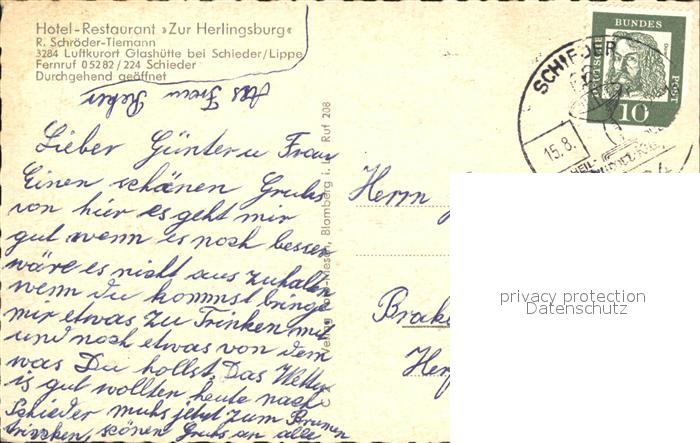 72057334 alte Postkarte Glashuette Schieder Hotel Restaurant Zur Herlingsburg postalisch gelaufen Erhaltung siehe scans KatCode: 11110005766060
