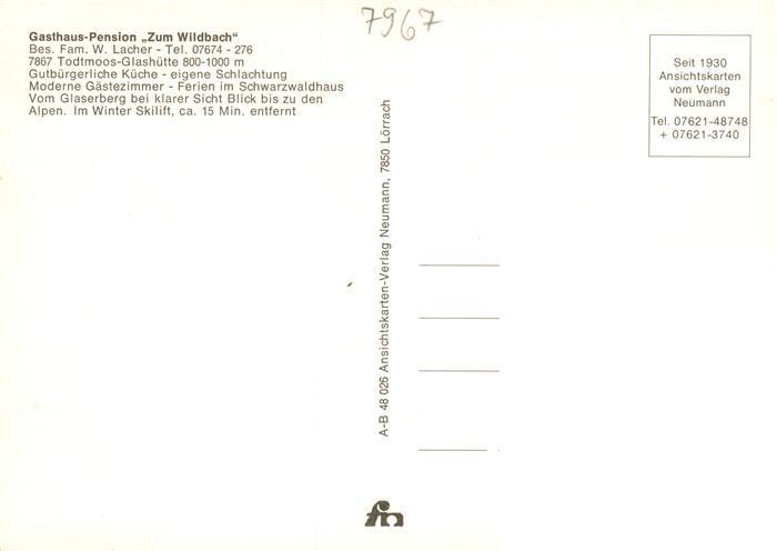 73894396 Glashuette Todtmoos Gasthaus Pension Zum Wildbach Gastraeume postalisch nicht gelaufen Erhaltung siehe scans [WerneD78] KatCode: 11110008337108
