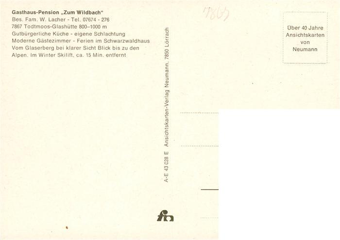 73927594 Glashuette Todtmoos Gasthaus Pension Zum Wildbach Gastraeume postalisch nicht gelaufen Erhaltung siehe scans [WerneD78] KatCode: 11110008337108