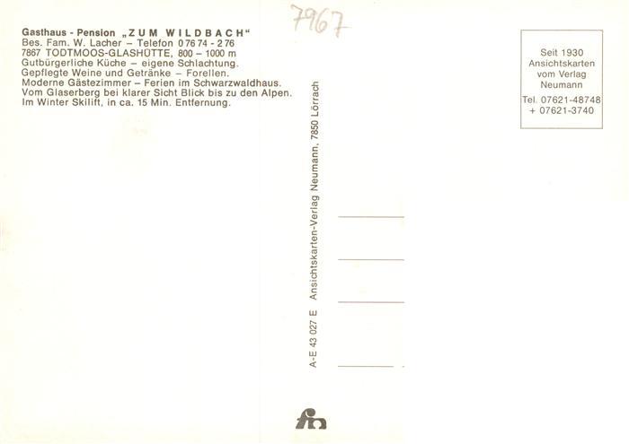 73894395 Glashuette Todtmoos Gasthaus Pension Zum Wildbach postalisch nicht gelaufen Erhaltung siehe scans [WerneD78] KatCode: 11110008337108