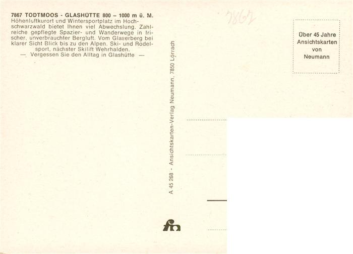 73927595 Glashuette Todtmoos Panorama postalisch nicht gelaufen Erhaltung siehe scans [WerneD78] KatCode: 11110008337108