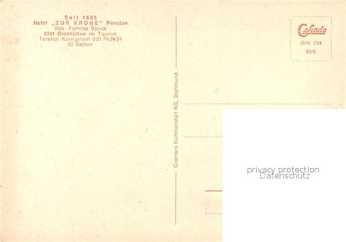 73253465 Glashuetten Hessen Hotel Pension Zur Krone postalisch nicht gelaufen Erhaltung siehe scans [KathaD81] KatCode: 11110006440011