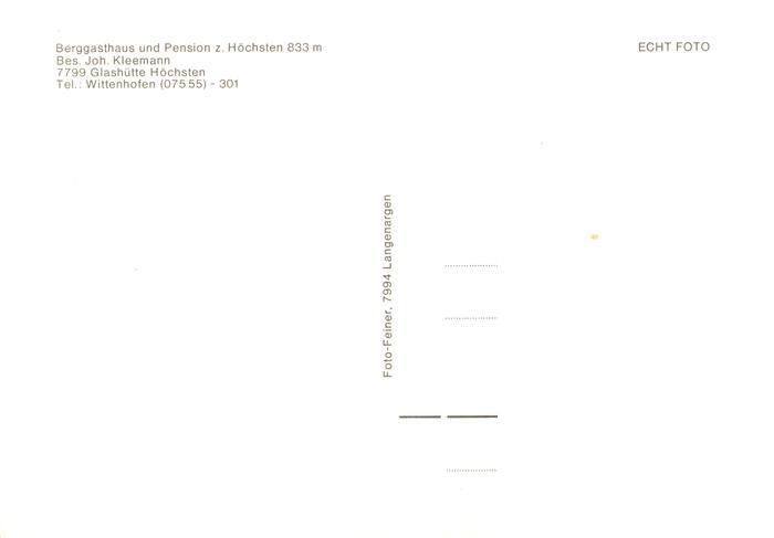 73874765 Glashuetten llmensee Berggasthaus Pension zum Hoechsten postalisch nicht gelaufen Erhaltung siehe scans [FriedD77] KatCode: 11110008437056