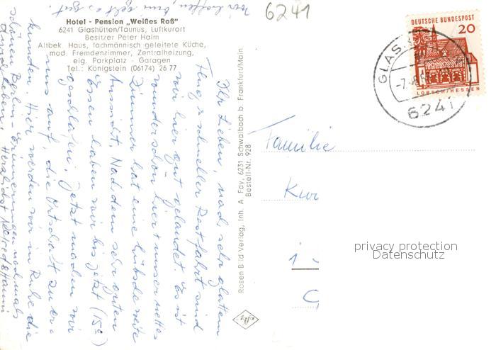 73861385 alte Postkarte Glashuetten Taunus Ansicht mit Hotel Pension Weisses Ross postalisch gelaufen Erhaltung siehe scans [FriedD77] KatCode: 11110006434003