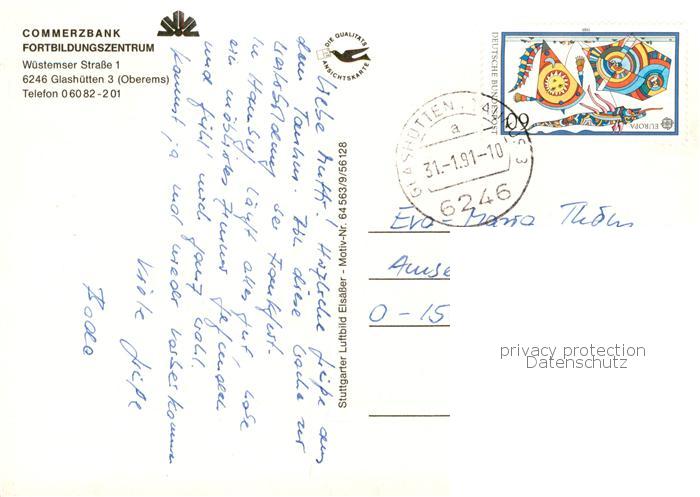 73796798 alte Postkarte Glashuetten Taunus Commerzbank Fortbildungszentrum Fliegeraufnahme postalisch gelaufen Erhaltung siehe scans [WerneD78] KatCode: 11110006434003