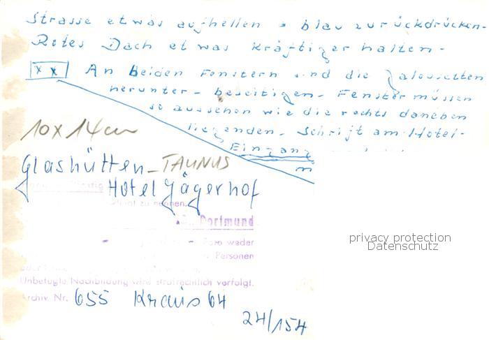 74052369 Glashuetten Taunus Hotel Jaegerhof postalisch nicht gelaufen Verlagsrohabzug (keine Postkartenrückseite) Erhaltung siehe scans [WerneD78] KatCode: 11110006434003