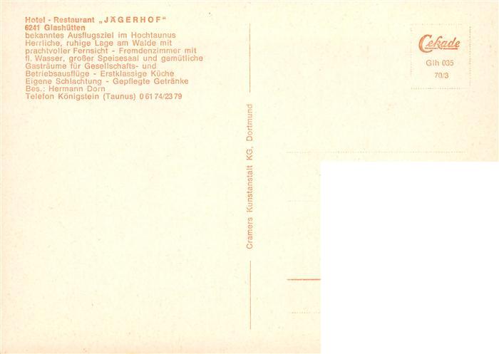 73886941 Glashuetten Taunus Hotel Restaurant Jaegerhof postalisch nicht gelaufen Erhaltung siehe scans [WerneD78] KatCode: 11110006434003