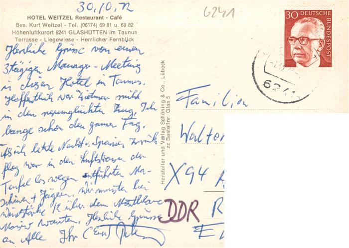 73936159 alte Postkarte Glashuetten Taunus Restaurant Cafe Hotel Weitzel Gastraeume postalisch gelaufen Erhaltung siehe scans [FriedD77] KatCode: 11110006434003
