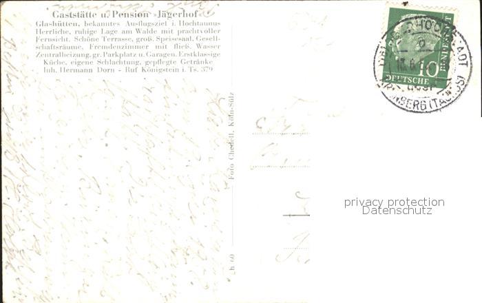 72095742 alte Postkarte Glashuetten Taunus Restaurant Pension Jaegerhof postalisch gelaufen KatCode: 11110006434003