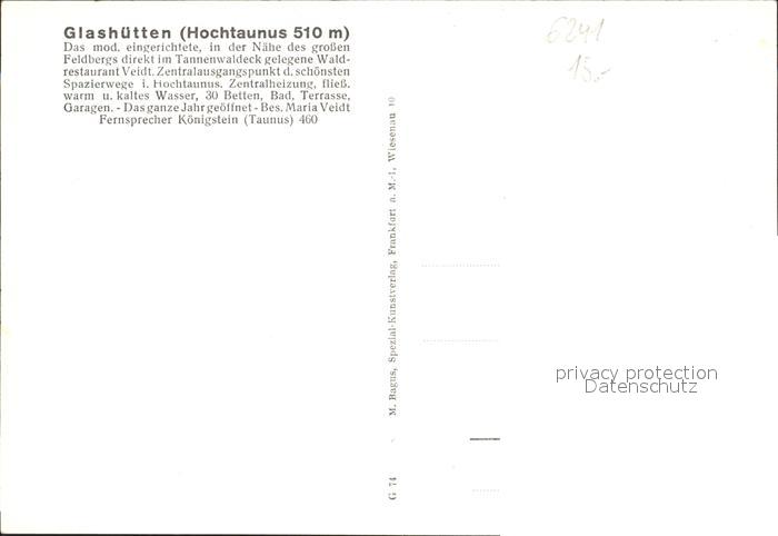 72096398 Glashuetten Taunus Restaurant Veidt postalisch nicht gelaufen Erhaltung siehe scans KatCode: 11110006434003
