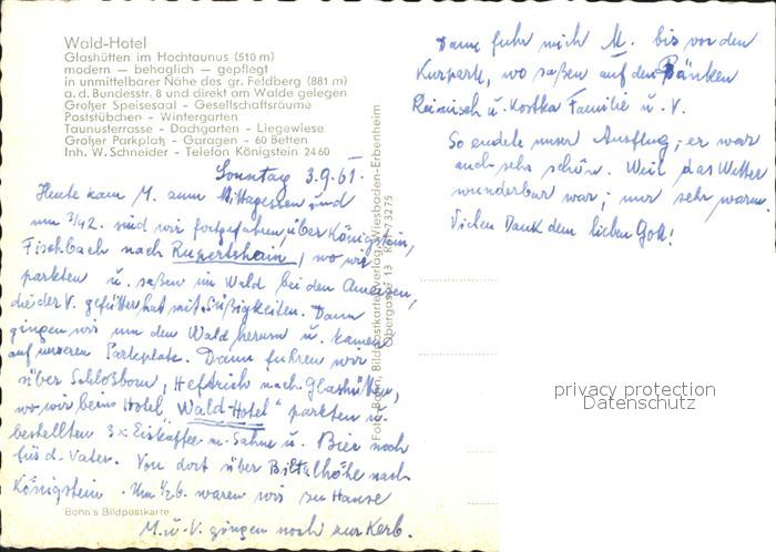 72097917 Glashuetten Taunus Wald-Hotel postalisch nicht gelaufen Erhaltung siehe scans KatCode: 11110006434003