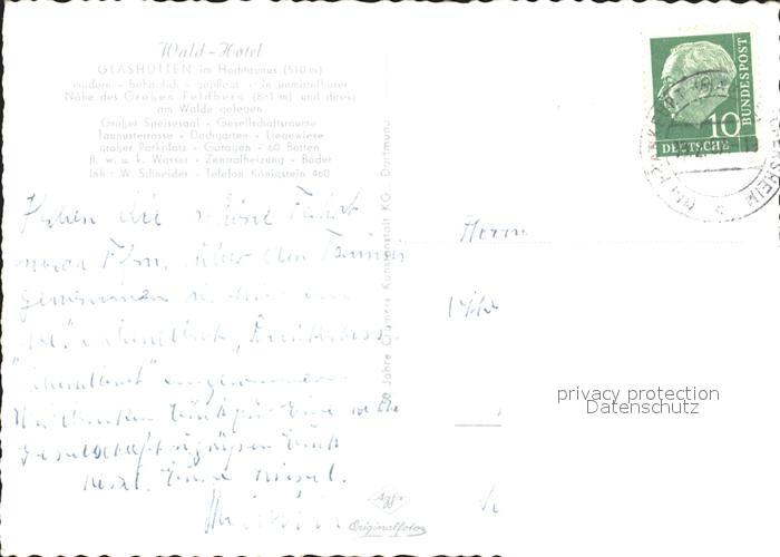 72095926 alte Postkarte Glashuetten Taunus Wald-Hotel postalisch gelaufen KatCode: 11110006434003