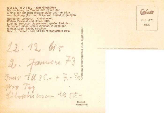 73935496 Glashuetten Taunus Wald Hotel Terrasse postalisch nicht gelaufen Erhaltung siehe scans [WerneD78] KatCode: 11110006434003