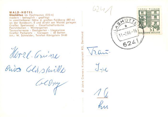 73936148 alte Postkarte Glashuetten Taunus Wald Hotel postalisch gelaufen Erhaltung siehe scans [FriedD77] KatCode: 11110006434003