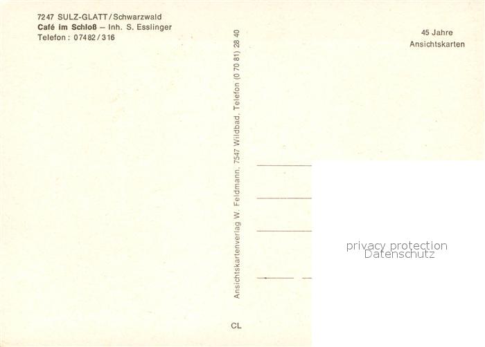 73642794 Glatt Cafe im Schloss Glattal Schwarzwald postalisch nicht gelaufen Erhaltung siehe scans [FriedD77] KatCode: 11110008325057