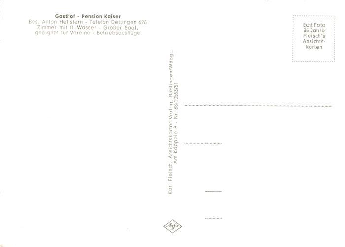 73886994 Glatt Glattal Dettingen Sulz Neckar Gasthof Pension Kaiser Speiseraum Dorfansicht Speiseraum Saal postalisch nicht gelaufen Erhaltung siehe scans [FriedD77] KatCode: 11110008325057