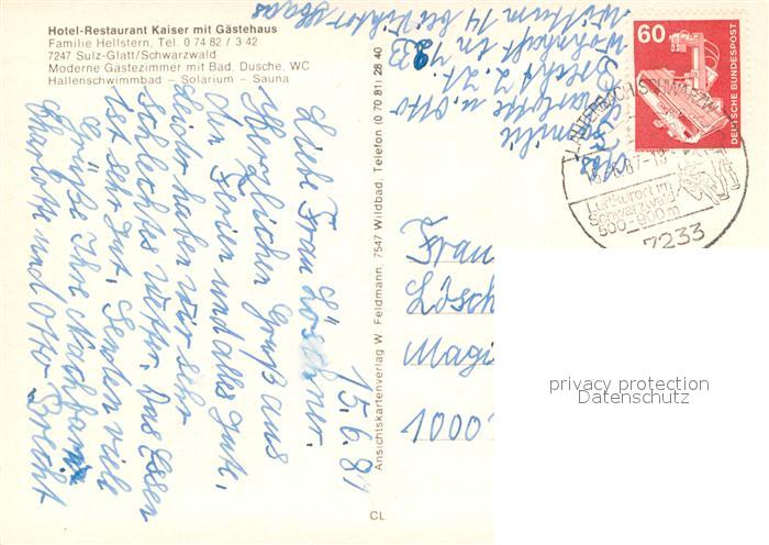 73723873 alte Postkarte Glatt Hotel Restaurant Kaiser mit Gaestehaus postalisch gelaufen Erhaltung siehe scans [FriedD77] KatCode: 11110008325057
