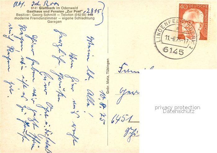 73131441 alte Postkarte Glattbach Odenwald Gasthaus Zur Post postalisch gelaufen Erhaltung siehe scans [NatalD47] KatCode: 11110006431015