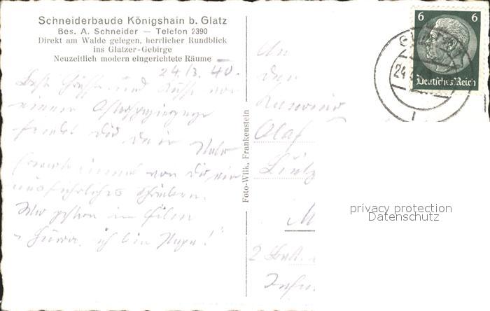 31738568 old postcard Glatz Niederschlesien Schneiderbaude Koenigshain postalisch gelaufen Erhaltung siehe scans KatCode: 11410