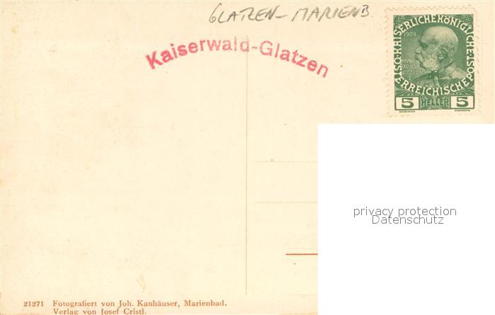 33708367 old postcard Glatzen Marienbad Tschechien Jagdschloss Kaiserwald Restauration postalisch gelaufen Erhaltung siehe scans [WerneD78] KatCode: 11520