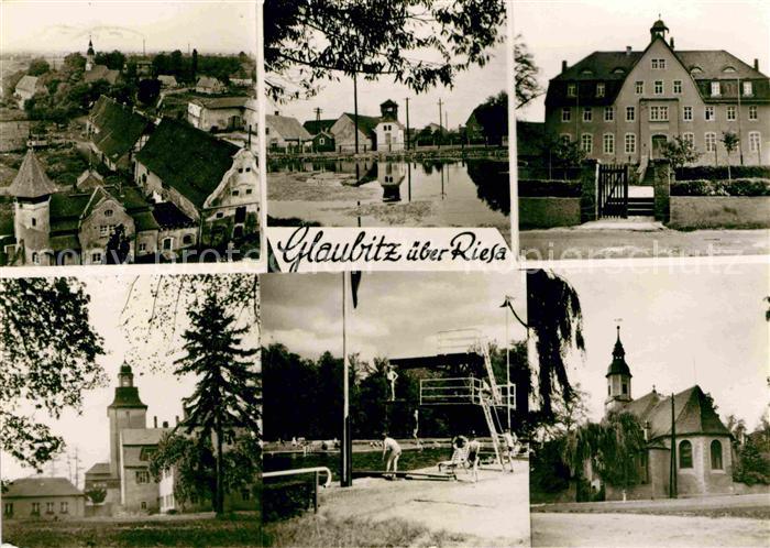 72634403 alte Postkarte Glaubitz Kirche Freibad postalisch gelaufen Erhaltung siehe scans [AndreD76] KatCode: 11110014285070