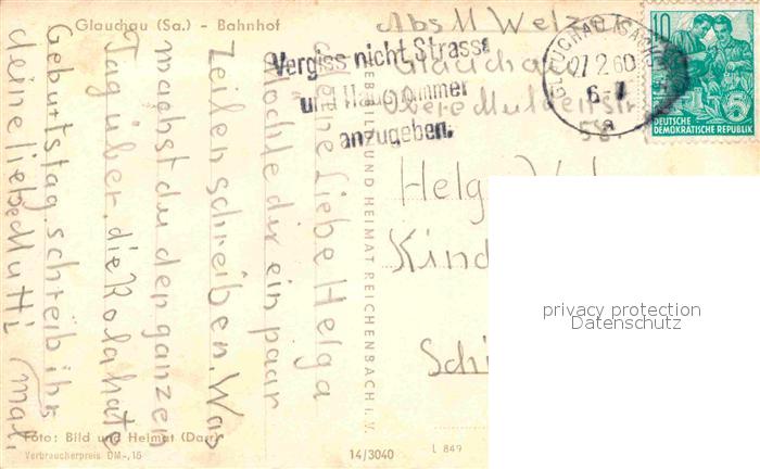 32657290 Glauchau Bahnhof postalisch nicht gelaufen Erhaltung siehe scans [AndreD76] Andr Katcode 11110014173070