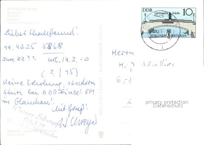 72261927 alte Postkarte Glauchau Dr Friedrichs Strasse Rosarium Postamt Bahnhof Springbrunnen Schloss postalisch gelaufen Erhaltung siehe scans KatCode: 11110014173070