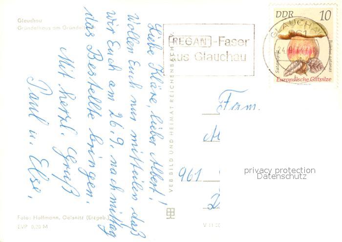 73035725 alte Postkarte Glauchau Gruendelhaus Gruendelteich postalisch gelaufen Erhaltung siehe scans [KathaD81] KatCode: 11110014173070