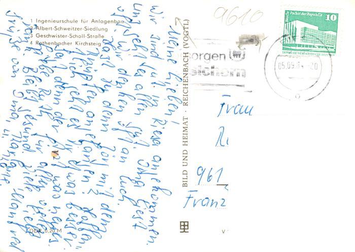 73907543 alte Postkarte Glauchau Ingenieurschule Albert Schweitzer Siedlung Geschwister Scholl Strasse Rothenbacher Kirchsteig postalisch gelaufen Erhaltung siehe scans [FriedD77] KatCode: 11110014173070