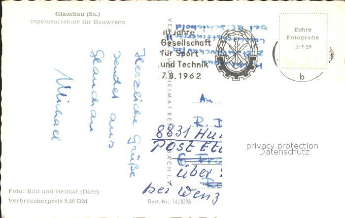 72091501 alte Postkarte Glauchau Ingenieurschule Bauwesen postalisch gelaufen Erhaltung siehe scans KatCode: 11110014173070