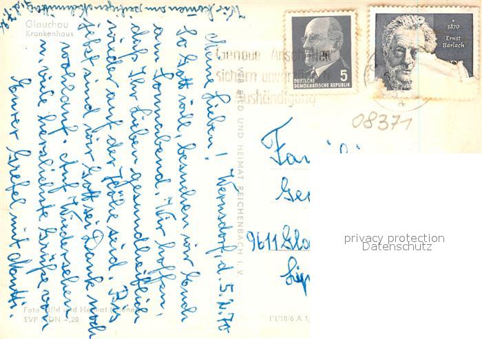 73565469 alte Postkarte Glauchau Krankenhaus postalisch gelaufen Erhaltung siehe scans [FriedD77] KatCode: 11110014173070