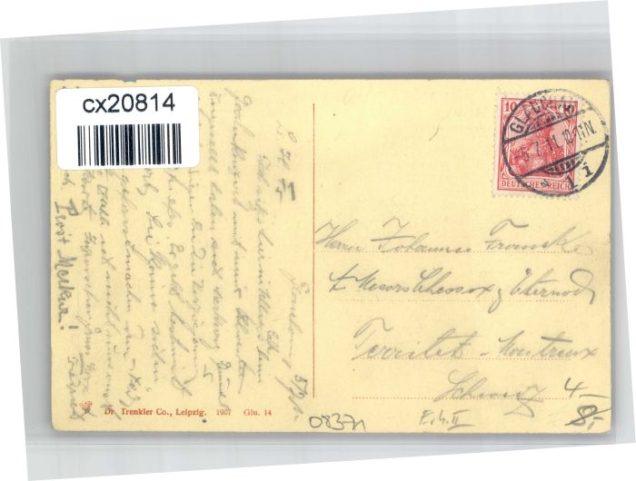 30740032 alte Postkarte Glauchau Leipzigerstrasse Restaurant Cafe Emil Uhlig postalisch gelaufen KatCode: 11110014173070