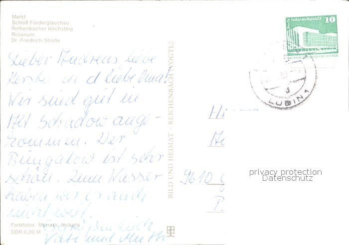 72383216 alte Postkarte Glauchau Markt Schloss Forderglauchau Rosarium postalisch gelaufen Erhaltung siehe scans KatCode: 11110014173070