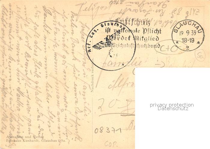 43039203 alte Postkarte Glauchau Oswald Seyfert Park und Bahnhof Springbrunnen NZ4 postalisch gelaufen Feldpost Erhaltung siehe scans [FriedD77] KatCode: 11110014173070
